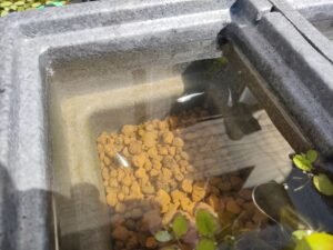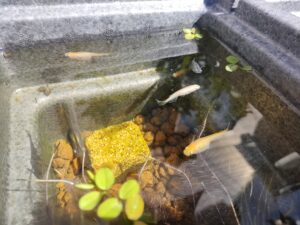そう、こちらメダカの学校です。(川の中ではありませんが。)