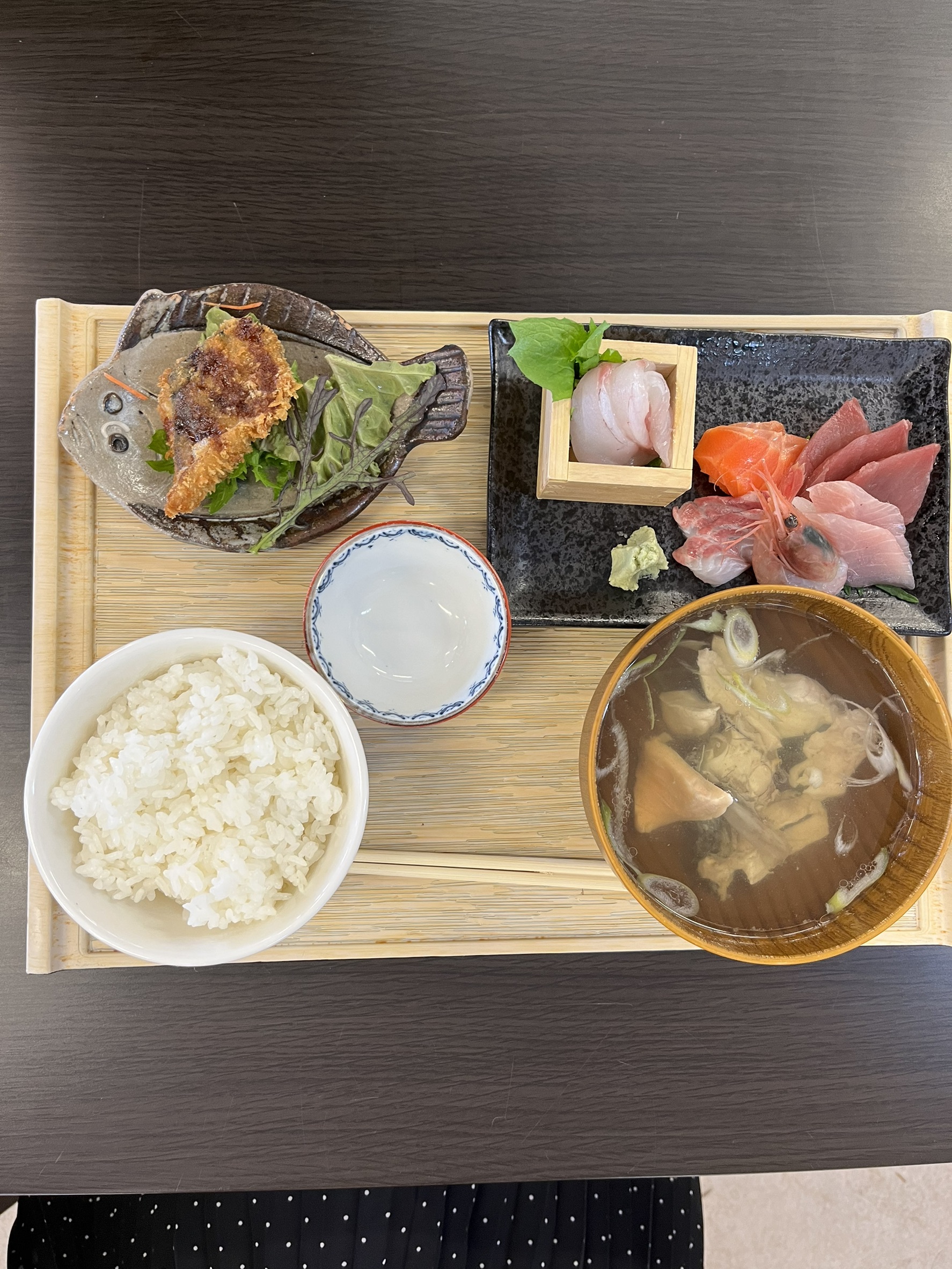 お昼に合わせて道の駅てんのうに行き、お刺身定食を堪能。