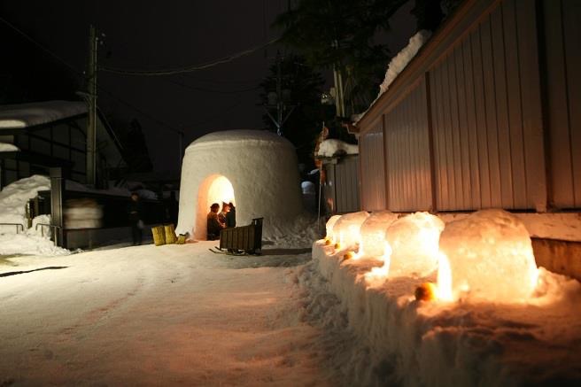 この祭りでは、子どもたちが雪で作ったかまくらに入り、地元の子供たちが甘酒やおもちを振る舞います。